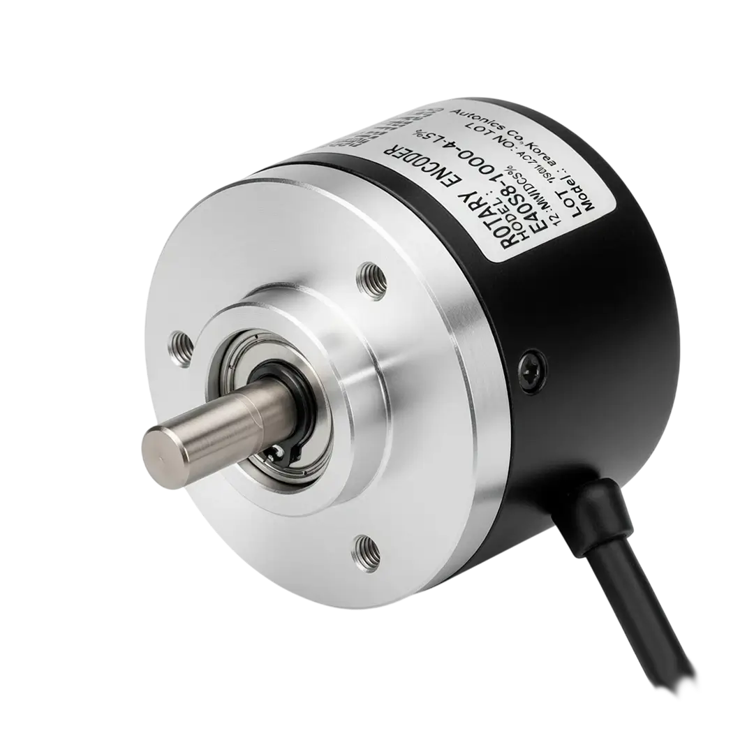 Encoder rotativo incremental de aluminio con eje sólido y cable blindado para control de velocidad industrial en Paraguay]
